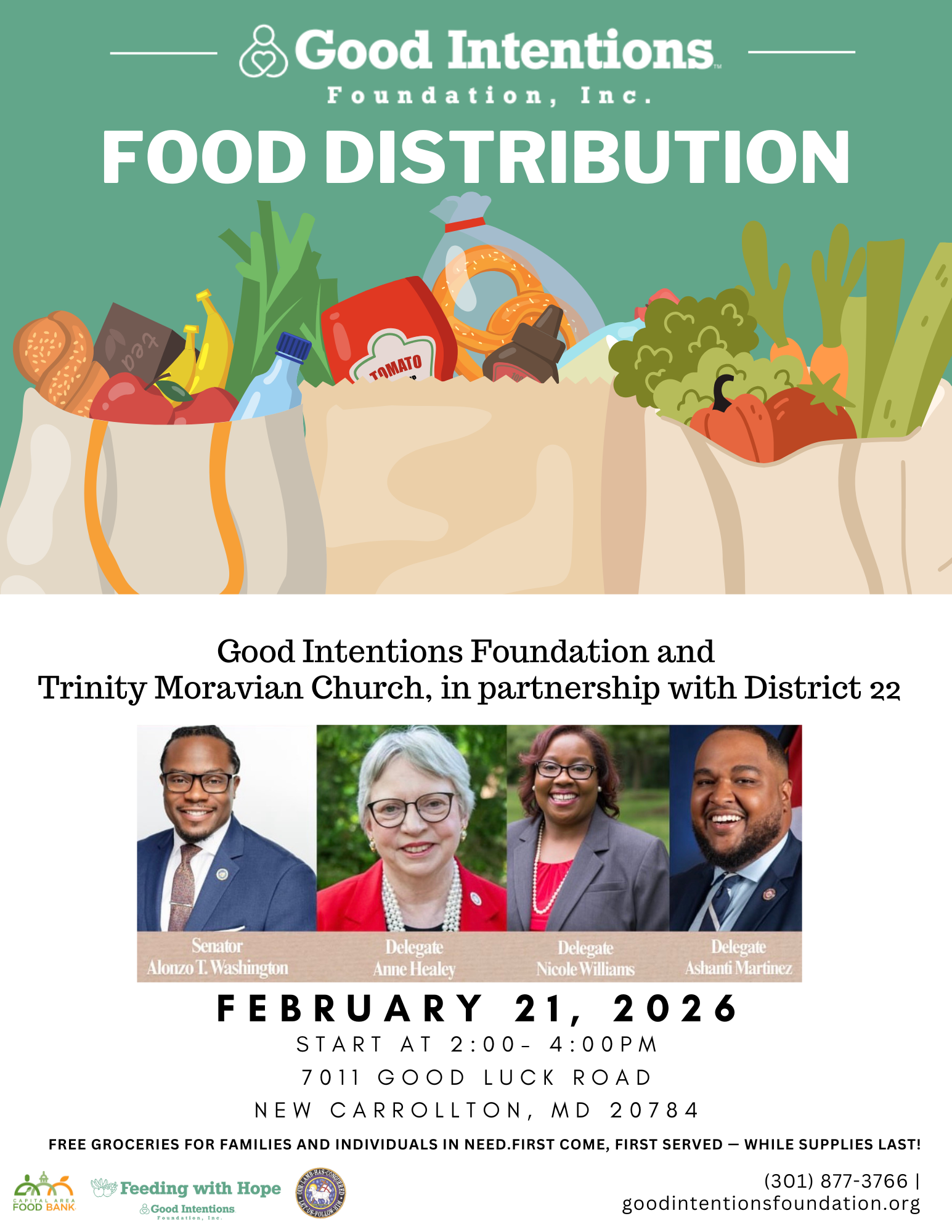 Good Intentions Foundation, Inc., in partnership with Trinity Moravian Church and District 22, is proud to present a special Community Food Distribution designed to support families and individuals in need. We believe a strong community begins with access to healthy food — and through our Feeding with Hope initiative, we are committed to helping neighbors thrive.